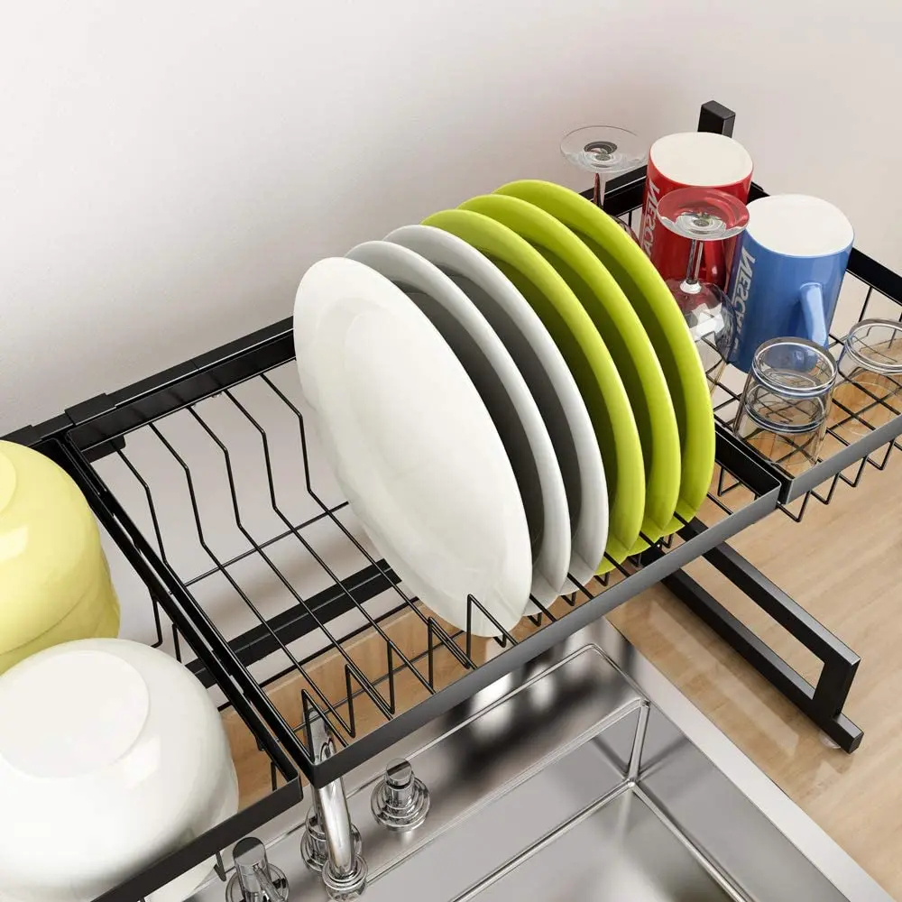Dish Drainer Kitchen Organizer Expandable Drying Rack Over Sink Multi Functional Kitchen Shelf Space Saving Home Organizer