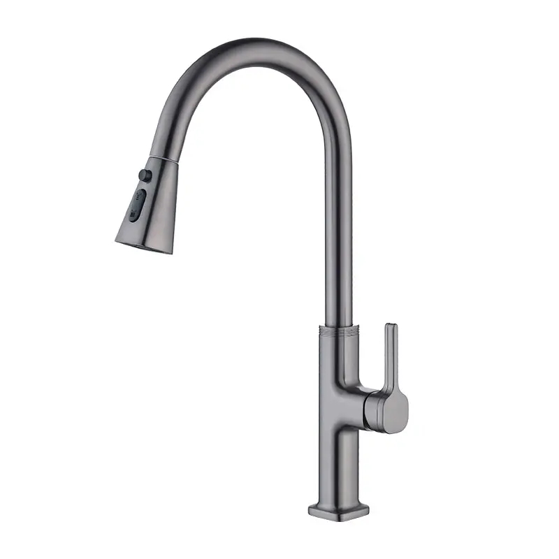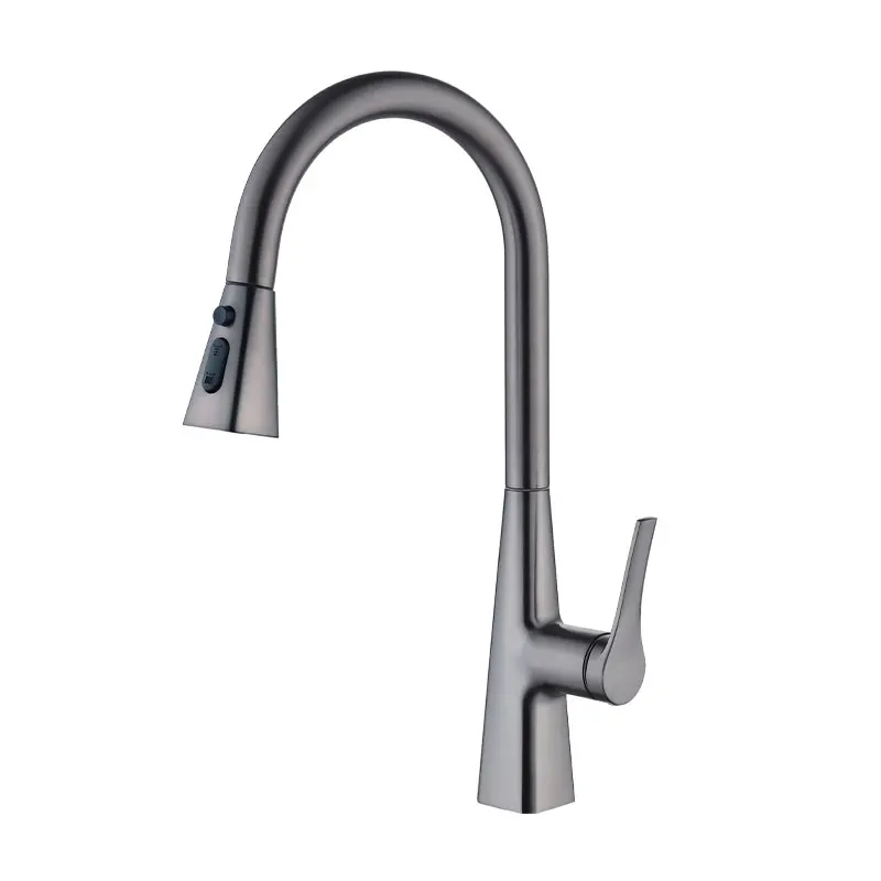 Economic Wall Mounted Kitchen Sink Taps Wholesale Brushed Gold Pull Down Spray Kitchen Faucet Mixer Single Hole Hotel Use