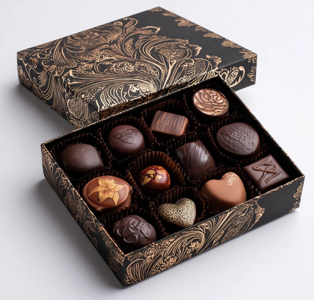 High Quality Customizable Gift Boxes Top Bottom Lids for Pralines Chocolates Various Snacks Sponge Lining High-End Folders Type